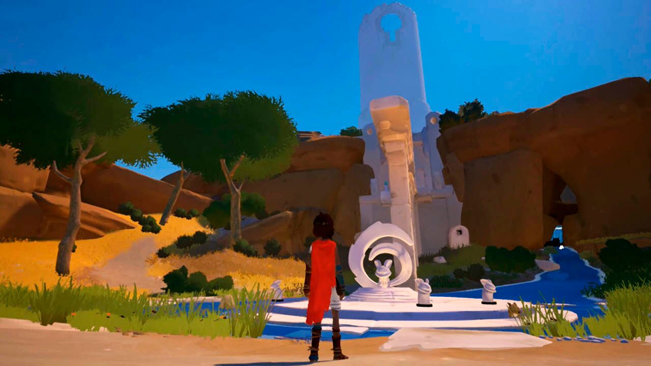 Dans RiME, vous incarnez un jeune garçon qui se réveille sur une mystérieuse île après une tempête torrentielle. Echoué sur une plage, votre exploration commence ainsi au milieu d’animaux sauvages, de ruines depuis longtemps oubliées et d’une tour massive qui vous invite à vous rapprocher d’elle. Vos seules armes sont votre esprit de déduction et votre volonté de réussir. Mais pas uniquement car vous rencontrerez un renard qui vous donnera également des indications utiles pour l’exploration de cette île énigmatique où vous devrez tenter d’arriver au sommet de la tour pour dévoiler les secrets les mieux gardés. Les amateurs d’exploration, de plateformes et d’énigmes seront ravis, RiME parvient à combiner le tout efficacement. Le début du jeu fait beaucoup penser à un certain Link’s Awakening mais les inspirations ne s’arrêtent pas là, les productions de Fumito Ueda (ICO, The Last Guardian), celles de thatgamecompany (Journey) sont aussi présentes. Le titre se divise ainsi en quatre zones distinctes, une ouverte au milieu des ruines de l’île ou de nombreux mécanismes seront à activer pour progresser, un environnement plus désertique ou un oiseau géant vous attaquera sans relâche, un temple qui réservera de belles surprises et une ultime zone pour conclure en beauté. Côté prise en main, rien de plus simple, notre jeune garçon peut sauter, effectuer une roulade (jamais utilisée dans le jeu), nager ou encore crier pour activer des mécanismes. Le gameplay repose énormément sur l’escalade et la résolution d’énigmes. Vous ne trouverez pas de très grandes difficultés dans ces dernières, elles sont accessibles à tous mais pour le moins original. Certaines sont très basiques comme activer quatre lumières, déplacer des cubes mais d’autres reposent sur un cycle jour/nuit et sont assez intelligentes. On aime beaucoup ce jeu d’ombres et de lumières qui s’accentue de plus en plus au fil de l’aventure.