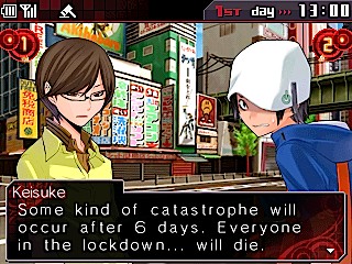 Devil Survivor propose un scénario se déroulant dans un Tokyo moderne et donc un univers dont on pourrait très bien s’identifier dans le protagoniste que nous incarnons aux côtés des personnages d’Atsuro Kihara, votre ami d’enfance spécialiste en informatique, et Yuzu Tanikawa, votre amie d’enfance. Cependant, vous pouvez très bien imaginer le scénario du jeu se dérouler dans n’importe quelle ville développée de notre monde. Imaginez-vous donc aller voir votre cousin comme convenu, accompagné par vos meilleurs amis, celui-ci donne à chacun d’entre vous l’appareil électronique qui est la tendance du moment, nommé ici COMPs et qui ressemble ni plus ni moins à une console Nintendo DS. Celui-ci ajoute que vous en aurez besoin par la suite et disparait rapidement. Cependant, votre ami hacker trouve qu’il est différent de celui qu’il possède déjà chez lui. Après quelques heures d’investigations, vous vous découvrez la possibilité d’invoquer des démons avec la machine et de former des pactes avec ceux-ci en les battants. Puis à peine avez-vous le temps de souffler qu’une grosse coupure de courant a lieu dans tout un quartier de la ville, dans l’impossibilité de rentrer chez vous, vous convenez de dormir à la belle étoile avec vos amis dans un lieu où d’éventuels démons ne vous surprendront pas. Cependant, à votre réveil vous découvrez que pour une mystérieuse affaire de gaz toxique répandu dans la ville, le gouvernement a instauré une zone de quarantaine sur tout le quartier jusqu’à ce que la situation soit sous contrôle. L’armée ayant ainsi déployé des troupes et des barrages autour du quartier et ayant pour ordre de ne laisser personne sortir de la zone. Cerise sur le gâteau, votre appareil et celui de vos amis reçoivent un mystérieux mail semblant prédire les évènements occurrent dans la journée, des évènements pas forcément joyeux, prédisant même la mort de personnes. Ajoutons à cela, le fait que vous apercevez une espèce d’horloge numérique au-dessus de vous, de vos amis et des personnes bloqués dans la zone et que vous déduisez vite qu’elle indique le jour qu’il vous reste à vivre et que celui-ci semble inférieur à 7 jours pour toutes les personnes présentes à l’intérieur de la zone de quarantaine. C’est ainsi que commence votre aventure dans cette zone fermée de Tokyo à essayer de comprendre ce qui se passe, à tisser des liens avec certains personnages et à comprendre les véritables motivations derrière cette fermeture, une vérité qui dépasse le cadre seulement humain et politique, croisant ainsi le monde occulte comme sait si bien le faire la série Shin Megami Tensei. Une aventure où chaque heure compte pour sauver non seulement Tokyo mais également dans une certaine mesure le monde d’une catastrophe à la fois humaine, sociale et occulte. Une aventure où les nombreux choix qui s’offriront à vous auront une incidence sur certains évènements et dont la fin correspondra à ce que vous aurez choisis. Une fin qui ne sera pas forcément salvatrice. Quelle route choisirez-vous ?
