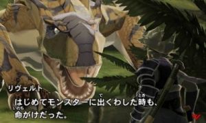 Parlons désormais du background de ce Monster Hunter Stories. Ce point fut d’ailleurs un des piliers de la promotion du jeu au Japon. Les opus canoniques de la série nous faisaient incarner un certain chasseur se retrouvant dans un village perdu où il enchaine de nombreuses quêtes envoyées par une guilde. Le but étant surtout de défendre le village en question tout en augmentant sa notoriété et en accomplissant les quêtes de la guilde afin de chasser des monstres toujours plus forts et plus impressionnants. Monster Hunter Stories prend la licence à contrepied en nous proposant un scénario similaire à ce que d’autres productions de type « JRPG » ont l’habitude de proposer. Une redécouverte de la licence par le background. On démarre donc avec un avatar vivant dans le petit village d’Hakum. Celui-ci passe des jours heureux à jouer avec ses amis d’enfance Lilia et Cheval (oui, ceci est bien le nom du malheureux garçon). Comme beaucoup d’enfants du village, il suit une formation auprès d’un jeune homme nommé Dan. Celui-ci enseigne aux enfants du village les bases nécessaires afin de devenir comme lui un Rider. Alors que dans les autres opus de la série, on incarne des Hunter, ou Chasseur dans notre langue, ce spin-off nous fait vivre une aventure inédite du point de vue des Riders. Cela ne signifie pas que les Hunters n’existent pas mais le spin-off nous les présente comme des personnes différentes des Riders. Cette comparaison, cette distinction entre ces deux groupes d’individus participent justement à nous faire redécouvrir la licence Monster Hunter sous un nouveau jour. Les Riders sont des individus qui ne vivent pas de la chasse aux monstres mais apprennent à coexister et forger des liens avec ces êtres vivants. Le prologue plutôt innocent du jeu se termine sur une note dramatique pour un de nos protagonistes et l’on se voit propulsé quelques années plus tard avec des personnages adolescents et sur le point de passer leur examen afin de devenir des Riders confirmés. Votre avatar et Cheval deviennent des Riders. Cependant, les évènements passés ont profondément changé les relations entre vos 3 protagonistes ou du moins entre Cheval et vos 2 autres héros incluant votre avatar. Alors que les traditions du village d’Hakum interdisent tout villageois et Rider du village à sortir de la région, la suite des évènements fait que chacun des 3 personnages importants que l’on suit depuis le début emprunte une route différente. Cheval ira dans une quête de puissance afin de contrôler des monstres plus puissants en allant à l’encontre de l’enseignement Rider prônant de forger des liens avec les monstres.