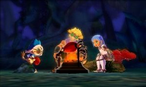 Pour le reste du gameplay d’exploration, on se retrouve avec quelque chose de très proche à ce que l’on retrouve dans la série Monster Hunter. On explore des zones où l’on peut cueillir de nombreux végétaux ou matériaux divers et variés afin de crafter différents objets. Prenons l’exemple de la potion de base que l’on obtient en mélangeant de l’herbe avec des champignons bleus. On peut également stocker de nombreux matériaux utiles au craft d’objets simples mais également d’équipements. Pourtant, le craft d’équipements requerra également que l’on combatte des monstres afin d’obtenir des parties de ceux-ci, chose plus familière aux fans de la série. Il s’agira également avant de pouvoir véritablement créer une nouvelle pièce d’équipement d’accomplir des quêtes annexes livrées par le forgeron présent dans chaque zone habitée du jeu. Il est possible d’acheter de nouveaux équipements mais comme dans les opus canoniques rien ne vaut un équipement que vous aurez obtenu à la sueur de votre sang. Sur ce point, les fans hardcore noteront que le système a été rendu beaucoup plus accessible par rapport aux autres opus mais il reste suffisamment laborieux pour rebuté éventuellement le jeune public, véritable cible du jeu. En effet, on ne refait peut être plus 50X fois la même mission avec le même monstre à abattre afin d’obtenir une certaine partie de monstre avec un taux de drop extrêmement bas. Mais il n’en reste pas moins que certaines quêtes et équipements vous demanderont un peu plus d’efforts et cela peut dérouter un certain public. Sans parler de la gestion inventaire qui sera peut-être rebutante pour beaucoup de nouveaux joueurs. Au final, il sera difficile de dire si le spin-off peut contenter tout le monde sur ce point. Les fans hardcore toujours en recherche de challenge auront peut-être un mauvais feeling face à une facilité à laquelle ils n’ont pas l’habitude en temps normal. Les nouveaux peuvent apprécier simplement le spin-off, toutefois et bien qu’il soit infiniment moins laborieux que dans un opus classique, l’aspect farming de Monster Hunter peut rebuter le jeune public ciblé. Ce qui est une belle ironie.