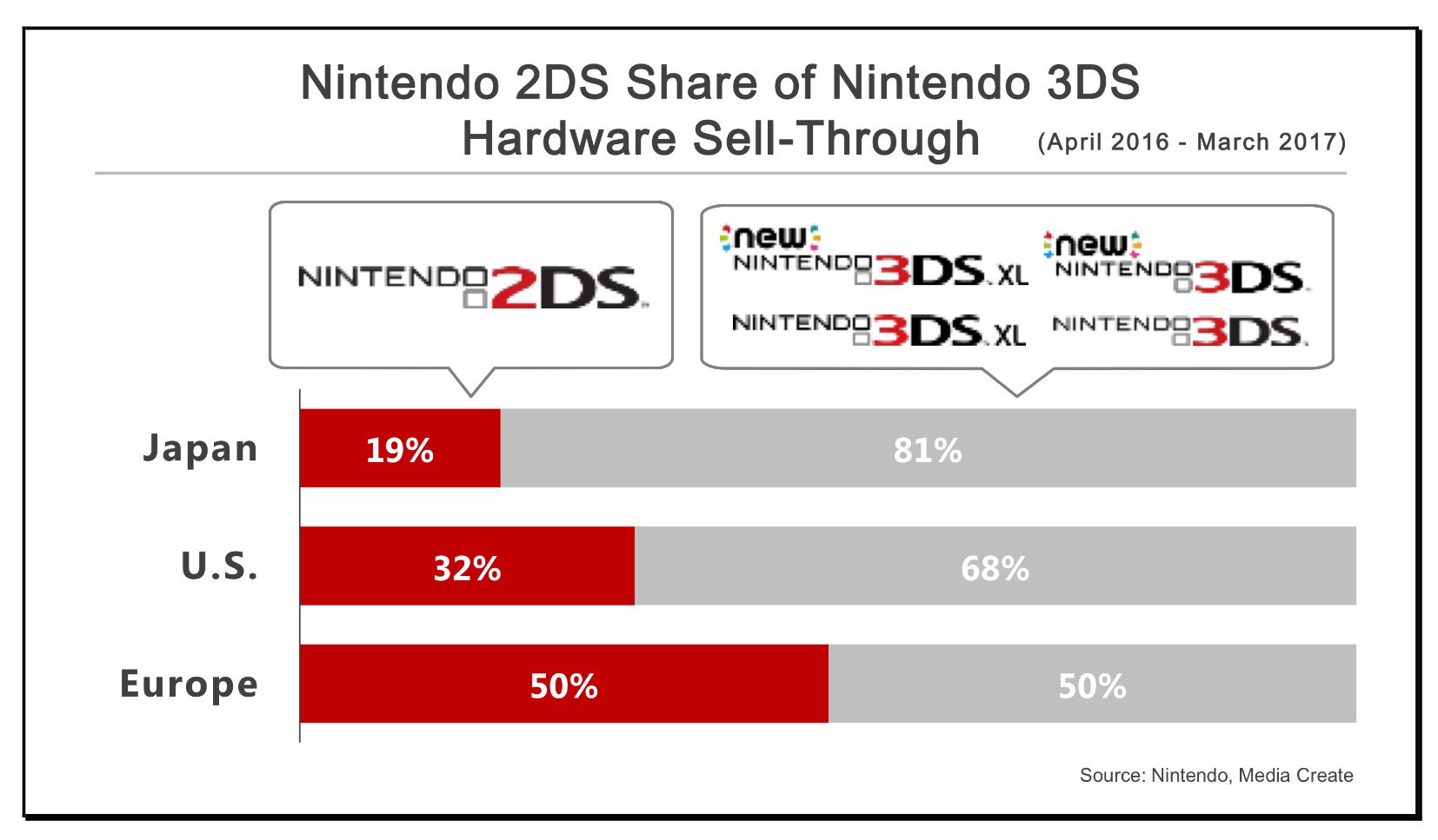 La Nintendo 2DS représente la moitié des ventes de consoles de la famille 3DS en Europe. On comprend mieux l’annonce de ce matin :