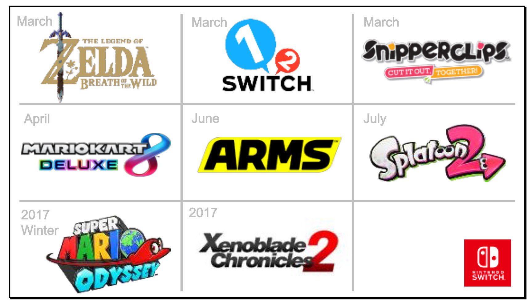 Autre les ventes de Zelda dévoilés hier, on parle de 1 million de 1-2-Switch distribués, 500 000 Super Bomberman R. Gros succès sur l’eShop, Snipperclips s’est vendu à plus de 350 000 unités. Le planning des jeux Nintendo prévus sur Switch cette année. Xenoblade Chronicles 2 est toujours de la partie ! Fire Emblem n’est pas dans le planning, car considéré comme tiers (développé et édité par Tecmo Koei).
