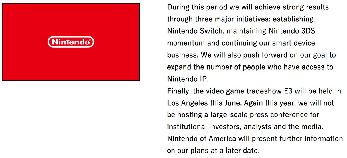 A noter que lors de la présentation, Nintendo a confirmé que des nouveaux jeux seront annoncés très prochainement et qu’ils sont des gros potentiels de ventes pour promouvoir la Switch. On en saura plus surement via un Nintendo Direct ou à l’E3. D’ailleurs, cette année encore, Nintendo ne tiendra pas de conférence sur scène à l’E3, plus de détails seront annoncés plus tard.