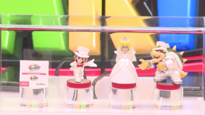 Enfin Nintendo a dévoilé juste après le Nintendo Spotlight que le jeu sortirait avec trois amiibo. La collection dédiée au jeu comprendra Mario, Peach et Bowser dans leur tenue de « mariage » (nom donné par Nintendo dans le communiqué) que l’on voit dans le trailer. En revanche on ne sait toujours pas quelle utilité ils auront en jeu.