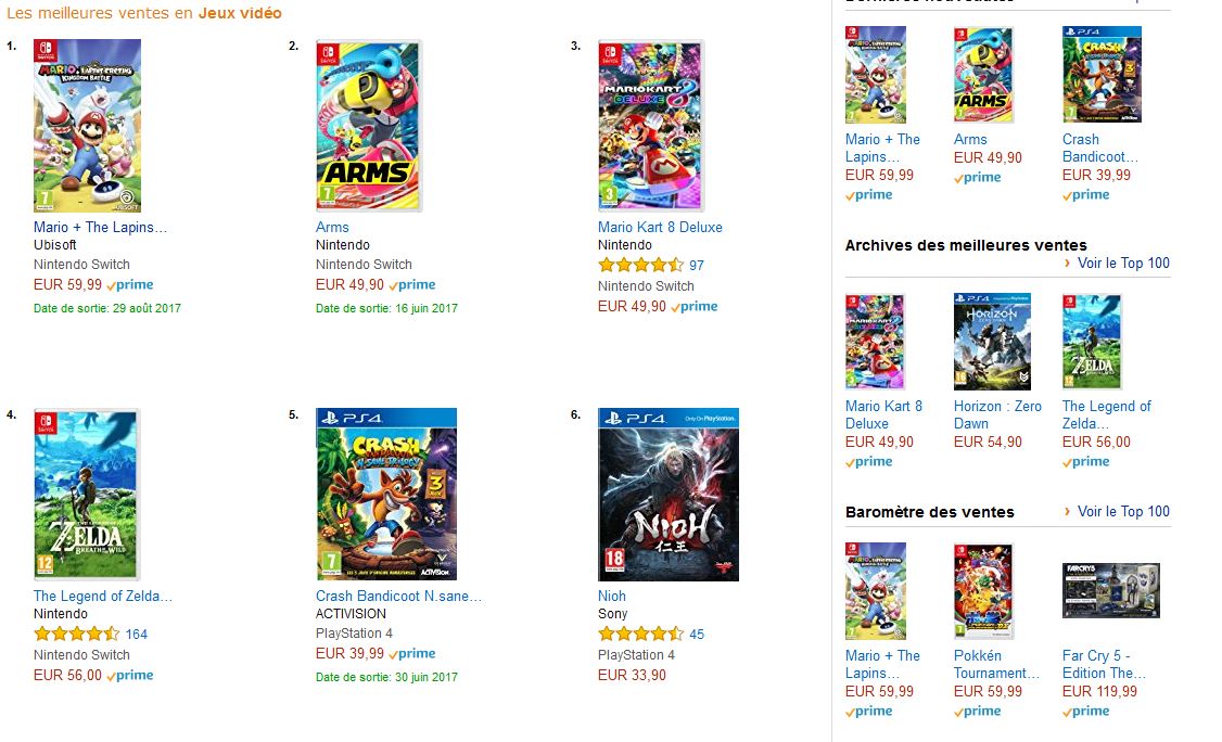 Petite information très surprenante : Mario + The Lapins Crétins: Kingdom Battle est déjà numéro 1 des ventes Amazon actuellement. Est-ce l’attente de l’annonce teasé depuis plus d’un an, l’annonce récnete, le gameplay X-Com très intéressant ou simplement le curieux mélange savoureux de la série Lapins- Crétins et Mario ? Quoi qu’il en soit, le jeu semble trouvé son public comme le prouve les ventes Amazon.fr. Le jeu sortira le 29 aout prochain.