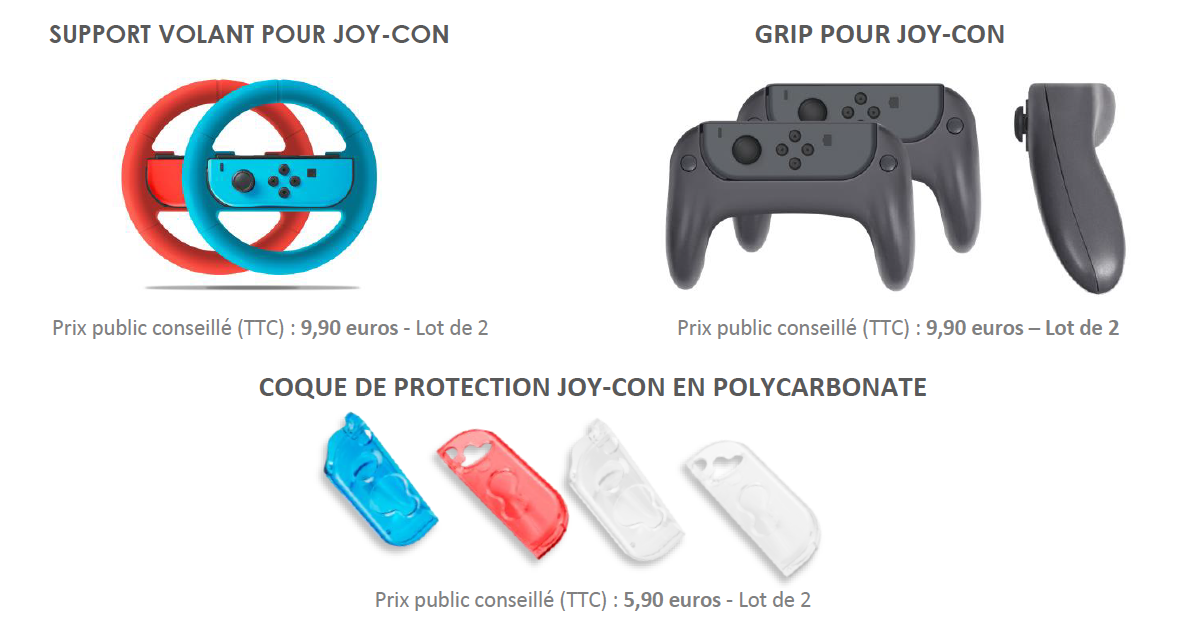 Pour la fin d’année, Bigben a imaginé de nouveaux accessoires permettant aux joueurs de prendre le plus grand soin de leur console et de bénéficier d’une expérience de jeu encore plus complète. Afin de faciliter la prise en main de vos Joy-Con et assurer un confort sans faille, mais aussi la longévité de votre matériel, Bigben a créé des accessoires sur-mesure et convenant à tous les usages : supports pour transformer votre Joy-Con en volant, en véritable manette, ou encore coque en polycarbonate pour les protéger des chocs.