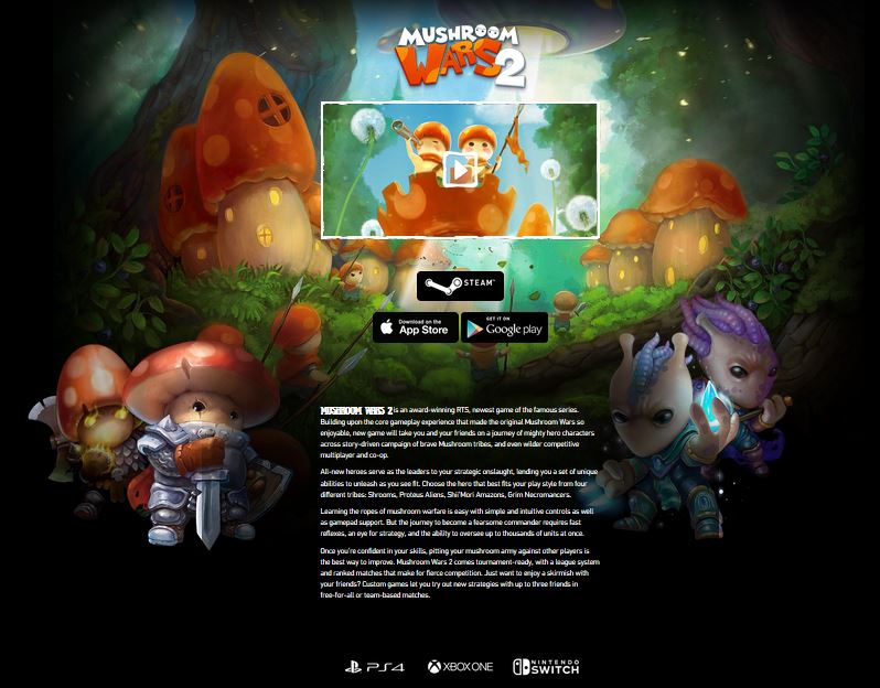 Aucune annonce officielle n’a encore été faite pour la sortie de Mushroom Wars 2 sur Nintendo Switch et pourtant un tout petit détail sur le site web officiel du jeu, permet un gros doute.