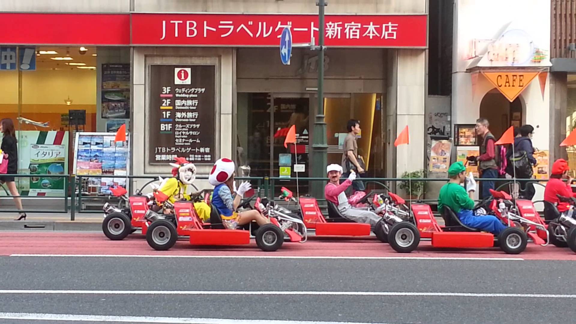 Visiter Tokyo est un rêve pour de nombreux passionnés de jeux vidéo (et tant d’autres d’ailleurs !). Ville emblématique de l’univers gaming, elle est aujourd’hui le siège d’un bien curieux phénomène. En effet, si vous avez eu la chance de parcourir la ville il y a peu, peut être avez vous croisé de drôles de petits bolides… qui ne sont pas sans rappeler ceux que vous utilisez installé bien tranquillement sur votre canapé. Eberlué, sans doute avez vous cligné encore et encore des yeux… vous les frottant frénétiquement, et allant jusqu’à vous pincer. Mais non. Vous ne rêviez point. « Mario Kart » s’installe sur Tokyo !