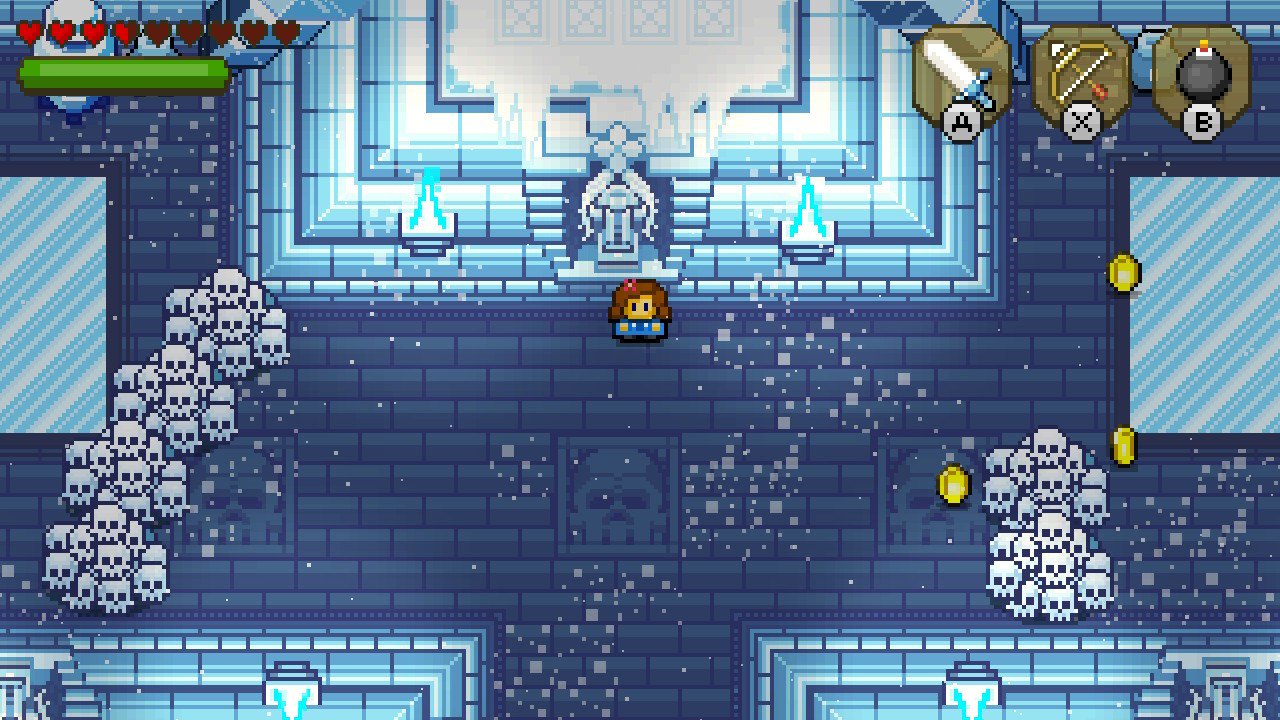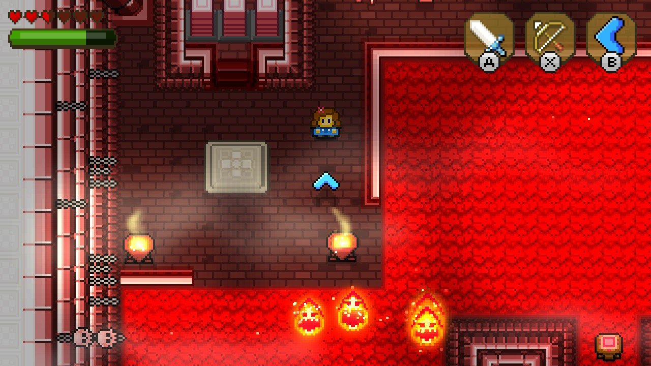 Dès votre entrée dans le donjon, si vous avez incarné Link dans ses premières années vidéo ludiques, la vue de haut, les portes qui se referment derrière vous pour ne se ré-ouvrir qu’après avoir éradiqué tous les ennemis de la pièce, les coffres contenant des potions et pièces d’or et même les fissures lézardant certains murs, vous feront certainement un petit pincement au cœur. Une fois votre première tâche accomplie, après avoir résolu quelques énigmes vous permettant d’apprendre à vous servir de votre bouclier, de votre attaque circulaire, avec votre épée, et même d’avoir affronté un mini-boss, le roi des rats (qui nous rappelle un certain Mouser dans Mario Bros 2), vous gagnez un nouvel item, très pratique, les bombes.