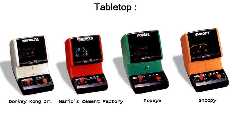 Série Table Top (1983) : Game and Watch s’améliore, tant au niveau des graphismes que des sons. Malheureusement, la taille elle aussi s’aggrandit, ce qui empêche les joueurs de glisser cette série dans leur poche. Le succès est dès lors mitigé… le principe reposait davantage sur la possession d’une mini borne d’arcade que l’on pose sur une table ou un bureau.