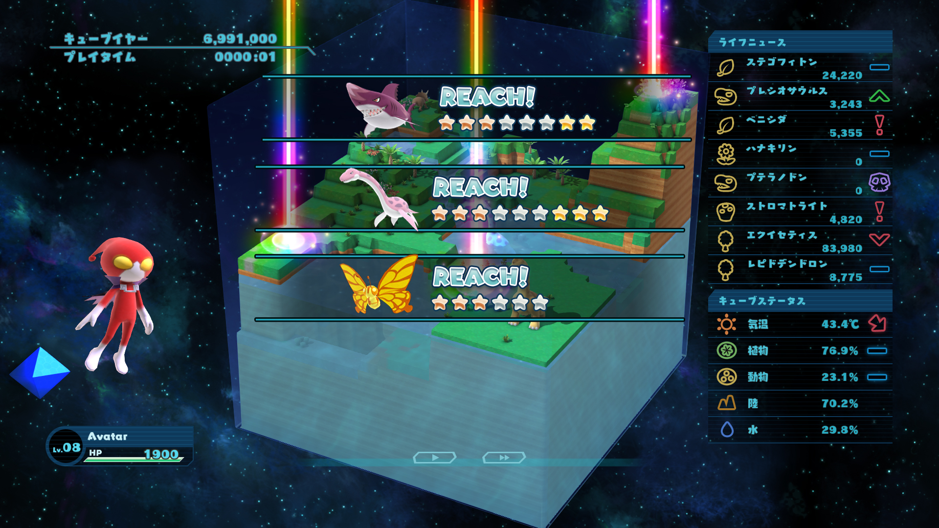 C’est un jeu de type bac à sable qui permet aux joueurs de créer des mondes à base de cubes et de donner vie à des formes de vie uniques et variées. En manipulant le monde qui les entoure, les joueurs pourront modifier sa géographie et sa température pour créer différentes conditions de vie et assister à la naissance de tout un écosystème.