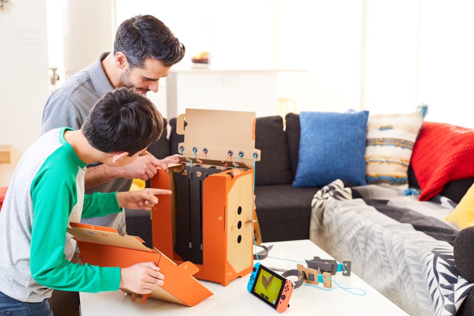 - En combinant les entrées et les sorties avec les différents Toy-Con, vous pourrez obtenir des résultats intéressants. Vous pourrez par exemple diriger la voiture téléguidée avec la canne à pêcheou utiliser la moto comme instrument de musique. Il sera même possible d’inventer vos propres créations Toy-Con à l’aide de matériaux courants que vous trouverez chez vous !