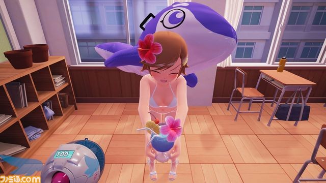 Nous oublions de vous parler des combats de boss mais ils sont suffisamment anecdotiques pour que l’on passe à côté de cela. Soulignons tout de même que Galgun 2 se présente plutôt bien sur Switch pour son format hybride et portable. En effet, il peut être suffisamment jouissif sur de courtes sessions de jeu, mais vous vous lasserez assez vite de l’aspect très répétitif du jeu si vous cherchez à pratiquer Galgun 2 sur de longues sessions. D’ailleurs, histoire de pallier cette répétition, un mode multijoueur à 2 n’aurait pas été de trop pour ce type de shooter arcade surtout pour un jeu Switch, le jeu à un joycon par joueur ne nous a pas semblé impossible à transcrire. Car au-delà de ça, ce n’est pas son allure ou son ambiance sonore qui vous motivera à revenir souvent dessus. Le jeu n’est pas laid, si nous comparons à son homologue PS4, il en est même plutôt proche. Galgun 2 nous propose un univers en 3D coloré, propre et une expérience globalement fluide. Quelques ralentissements sur certaines phases du jeu mais rien de véritablement méchant nuisant à l’expérience. En mode portable, le rendu ne nous a pas semblé différent, ce qui est une bonne chose. Seulement, ses environnements sont aussi variés que le type de mission que nous propose le jeu. Nous voyons seulement des salles de cours, une bibliothèque, une cours d’école, une cantine, les vestiaires, une grotte ( ?!) et… des salles de cours, une bibliothèque, une… bref vous nous aurez compris. Nous avons fait rapidement le tour du jeu autant en termes d’expérience que visuel. Reste la cinématique d’intro avec de courtes séquences plus ou moins animées que nous voyons également dans le jeu pour nous apporter un petit plus sans être transcendant. Les décors en plus d’être les mêmes ne sont pas forcément égaux en détail ou texture. En fait, nous ne nous attardons que sur les détails lors des missions de recherche d’objet pour « aspirer » tout ce que l’on voit, afin de repérer le pixel brillant de l’objet que l’on recherche. C’est vous dire à quel point ces missions sont un calvaire.
