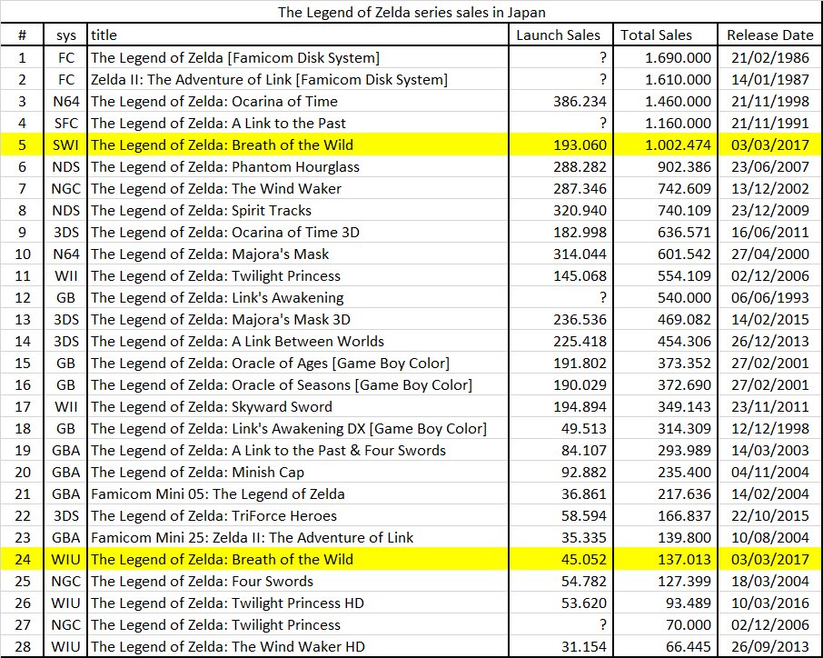 Le jeu passe le million de vente physique uniquement sur Nintendo Switch. Le cap avait déjà été franchi avec le cumul des ventes eShop, mais la on est dans le 100% officiel. Pour un Zelda, c’est la première fois depuis 1998 et Ocarina of Time ! Pour revenir à la Nintendo Switch, c’est la 4eme jeu à franchir le cap au Japon, après Splatoon 2, Mario Kart 8 Deluxe et Super Mario Odyssey.