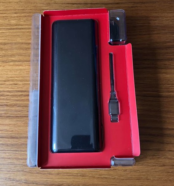 Puisque on change quand même régulièrement de jeu. On ne va pas vous faire l’outrage de faire une vidéo avec un petit chrono et les consoles qui se décharge, ces vidéos sont faites pour alimenter les débats de trolls. Dans la vraie vie, une console consomme plus ou moins de batterie en fonction du jeu mais aussi en fonction de ce qu’on fait dans un jeu. Cela parait logique, mais il semble nécessaire de le rappeler quand on regarde les réactions et interrogations qu’on a pu avoir lors de l’annonce du produit.  Aller, pour la route et pour chipoter. Le tableau plus haut annonce 0.34KG, on est plus proche des 360 grammes à la pesé. Côté design, on est dans les sentiers battus avec une ‘brique’ arrondie sur les angles, on est dans les standards du marché. En transport, la pochette est pratique et le système de charge n’est pas trop encombrant avec une Nintendo Switch, son but premier, mais peut être un peu plus avec un smartphone.