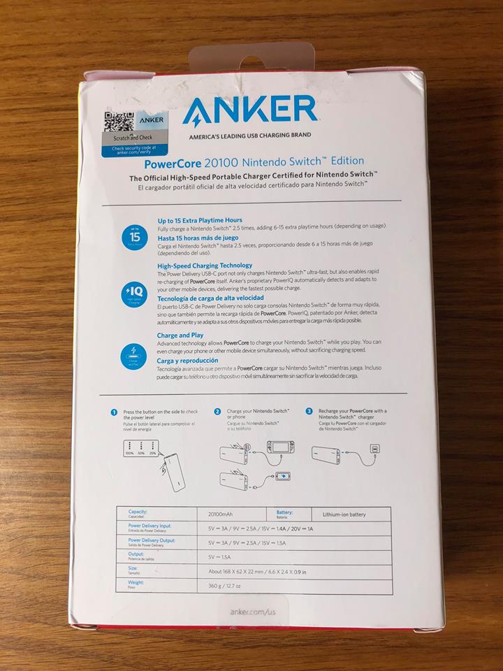 Spécialiste de la batterie portable, Anker Innovations a choppé la licence pour vendre des « solutions de charge à un design et des technologies pensés pour la Nintendo Switch ». Deux modèles annoncés pour le moment, la PowerCore 13400 mAh et la PowerCore 20100 mAh. Ils sont tous les deux disponibles depuis le 15 juillet, même si on a quand même du mal à les trouver pour le moment. On nous promet que les « technologies utilisées permettent une recharge de la console en moins de 3 heures en USB-C, même en jeu, et proposent jusqu’à 15 heures de batterie supplémentaire pour des parties qui peuvent désormais durer jusqu’au bout de la nuit. » On a testé cela pour vous.