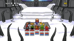 Très bonne idée sur le papier, le jeu retombe très vite, même trop vite dans des standards de RPG classique, ne laissant aucune opportunité de sortir du schéma “farmer pour avancer”. La difficulté de la quête principale vous forcera à traîner des pieds aux mêmes endroits pour ne pas vous faire écraser par des ennemis bien trop forts. Cela donne une fausse durée de vie à un jeu qui ne sort finalement pas du lot. Ajoutez à cela des musiques 8 bits qui deviennent malgré elles beaucoup trop répétitives et le tableau se noircit de lui-même. Et puis, des jets de dés scénarisés sur un jeu de rôle… c’est non !