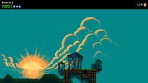Les développeurs du studio Sabotage ont fait le choix de nous sortir un jeu qui n’est pas, comme on le lit souvent, à mi-chemin entre la Nes et la Super Nes. Ils ont délibérément fait le choix de nous pondre ce qu’ils appellent « des animations, des décors et des sprites 8 et 16 bits méticuleusement conçus dans l’esprit des classiques de l’époque » et ça fonctionne carrément. Le jeu est superbe, les animations vraiment bien réalisées, un scrolling sur plusieurs plans, ce qui fait de The Messenger un jeu retro certes, mais avec, en bonus, le savoir-faire et la technologie de notre époque. Un critère devenu maintenant commun à tous les hits indés de ces dernières années.