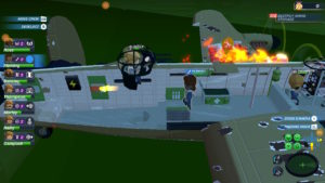 Alors que certains moments permettent de vaguer au repos, d’autres peuvent être critiques et même engendrer le crash du bombardier. Mais si une mission se passe mal et que la mort de tout l’équipage est à déplorer, certains peuvent survivre. Et on doit cela grâce aux statistiques de survie qu’ils possèdent. On trouvera avec beaucoup de bonheur un moyen de diminuer tous ces dangers en améliorant les tourelles de l’avion, en consolidant son blindage, en améliorant les combinaisons de l’équipage, etc. Un grand contenu est à retrouver dans Bomber Crew, on peut personnaliser notre avion de guerre, donner des compétences aux membres du bombardier, en recruter d’autres si besoin etc. Bref le plaisir de pouvoir améliorer encore et encore tout ce que l’on possède est bien présent. De la sorte le gameplay demeure riche et varié dans son ensemble, malgré des missions qui se ressemblent beaucoup car le procédé est toujours le même : décoller, voler vers le point de mission, faire attention aux chasseurs et bombarder les emplacements nazis, puis sortir du territoire ennemi et réatterrir sur la piste de la base.