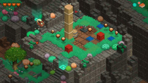 Red’s Kingdom est pour rappel un jeu de puzzle, cette partie réside donc dans la façon de contrôler le personnage. En effet Red se déplace en roulant de façon linéaire dans la direction qui lui est donné s’arrêtant seulement à l’impact contre le premier obstacle sur sa route. Le concept de ce genre de déplacement peut rappeler le principe de certaines énigmes impliquant de pousser des statues se déplaçant de façon linéaire sur un sol gelé (oui c’est une référence à Zelda mais pas uniquement).