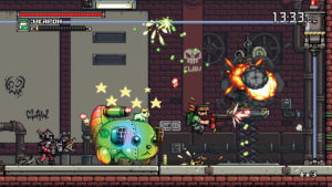Le challenge est bien présent et vous pouvez compter une bonne vingtaine d’heures pour en venir à bout, voir un peu plus pour le 100%, mais il faut être motivé. La bande-son 8-Bit est sympathique mais les musiques deviennent très vite énervantes. En ce qui concerne le contenu, les développeurs font plaisir avec de nombreuses armes, munitions en tout genre (gel, électricité, incendiaire…), compétences, objets… Il y a de quoi faire. On notera la présence d’un mode multijoueur en local et en ligne jusqu’à quatre dans les missions, il faudra cependant se partager les récompenses et espérer trouver du monde pour jouer avec vous.