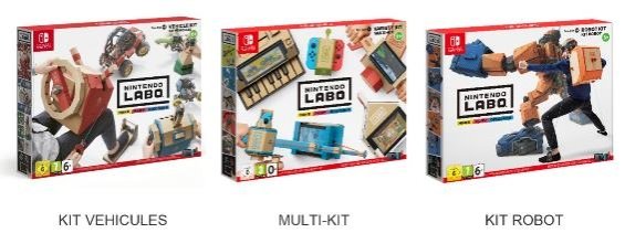 Nintendo Labo existe en 3 kits différents, le Multi Kit, le Kit Robot et le Kit Véhicules.