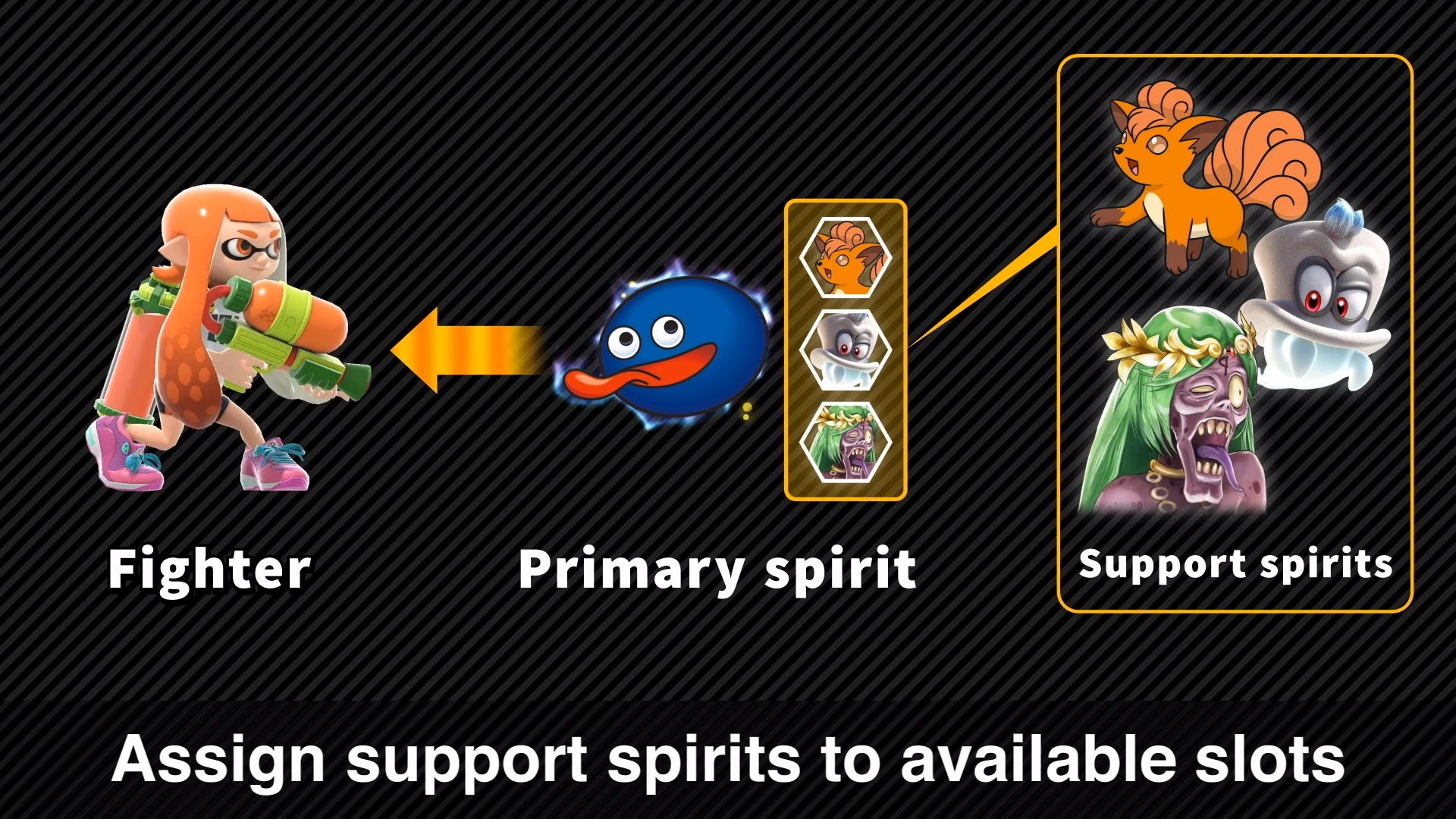 - Combinaisons d’esprits : grâce à l’immense quantité d’esprits présents dans Super Smash Bros. Ultimate, des milliers de combinaisons différentes sont possibles. Les joueurs seront toujours étonnés et captivés par tous les esprits qui apparaissent dans le jeu. Dans la mesure où les joueurs pourront récolter une abondance d’esprits, le jeu leur fera des suggestions d’esprits primaires et de soutien pour faciliter leur progression.