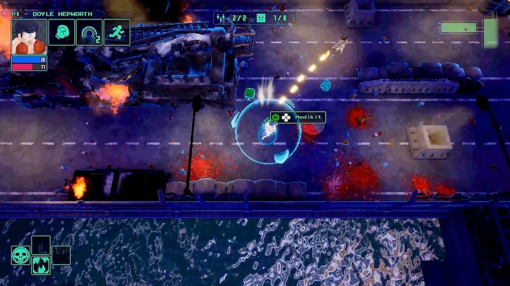 La diversité des ennemis rencontrés est aussi grande que les capacités que vous pourrez utiliser, vous pourrez ainsi par exemple devenir un policier avec la capacité d’utiliser votre Revolver et un “Super” renforçant vos munitions ou alors un Sans-Abri utilisant un caddie comme arme pour foncer sur les adversaires. La page Kickstarter du jeu mentionne plus de 60 personnages différents à posséder, parmi ceux-ci pas mal de références à la pop culture et aux années 80 avec par exemple Raiden de Mortal Kombat, un chasseur de fantômes de Ghostbusters ou encore Robocop.