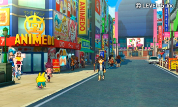 Côté marchandising, on sent bien que le développeur mise gros : avec chaque opus une nouvelle montre et on n’y échappe pas. Nathan et Ariane possèdent tous les deux unes Yo-kai Watch Modele U et, plus tard dans le jeu, la Yo-Kai Watch Rêve et le pistolet Blasters sont introduits. On se doute bien que tous ces objets seront commercialisés mais est-ce qu’ils sont utiles en jeu ? La Yo-Kai Watch l’est toujours et il faudra l’upgrader jusqu’au rang S pour se mesurer à des créatures plus puissantes. Côté gameplay, parlons tout d’abord de l’exploration. Level-5 fait ce qu’il fait de mieux et les limitations techniques de la 3DS ne peuvent pas faire évoluer le jeu pour l’instant. On reste sur des villes découpées en quartiers avec d’un côté Pistachsburg dont le dépaysement n’est pas total, les environnements sont similaires à Granval. Forcément, avec l’histoire d’Ariane à Granval-sur-Mer, le recyclage est total avec des environnements connus par tous mais les développeurs ont fait des efforts en introduisant de nouveaux lieux et de nouveaux angles de caméra, on découvre ainsi des rues, forêts, magasins sous un autre angle et en plus détaillés. Le Yo-Kai Watch World a même été retravaillé avec des nouveaux lieux mais nous n’en dirons pas plus. En ville, il y a donc des quêtes proposées par les habitants et les Yo-Kai, jamais rien de bien fou mais cela a au moins le mérite de proposer d’autres activités en dehors de l’histoire.