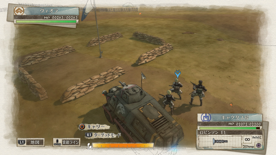 Le déroulement et développement de l’histoire sont orientés de façon très intéressante. Vous parcourez l’histoire en tournant les pages d’un livre qui représente le carnet de bord du héros principal : Claude Wallace. Dans ce carnet figurent de petites vignettes représentant des photos, des souvenirs et des schémas qui apparaissent au fur et à mesure de votre avancée. Chaque page retrace l’histoire, découpée en chapitre, et vous plonge dans l’univers et l’épopée de l’escadron E. Chaque vignette débloque la suivante et correspond à une ou plusieurs saynètes qui vous font progresser dans votre compréhension de l’histoire mais aussi dans le déroulement de la guerre. Les schémas vous font jouer des batailles, avec des objectifs à accomplir pour passer à la suite. Depuis le livre, vous aurez accès à diverses options via des marques pages. Vous pourrez gérer votre bataillon et ses membres, dépenser vos points d’expérience pour améliorer vos statistiques, compétences et armements et accéder à des escarmouches ou missions annexes pour renforcer les liens entre les membres de l’escadron. Une section Archives vous permet d’accéder à des journaux de presse qui retracent la guerre au fur et à mesure de votre progression et vous donnent plus de détails sur le background si vous êtes intéressés par l’histoire du jeu. Mais parlons maintenant du gameplay.
