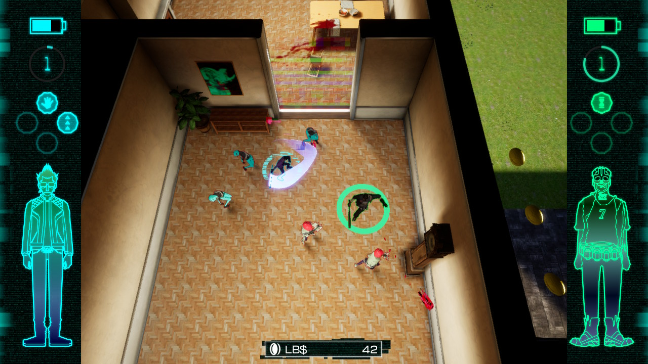 Pour progresser dans les niveaux, vous aurez le choix de piloter soit Travis, équipé d’un sabre laser que tous les fans connaissent sous le nom de Beam Katana ou alors, vous pourrez jouer avec Bad Man et sa célèbre batte de baseball nommée Chauve-Souris. Chacun dispose d’un nombre de points de vie et leurs points d’expériences sont communs, permettant de monter le niveau de l’un ou de l’autre à votre guise. Durant la partie, si vous jouez en solo, vous pourrez switcher de l’un à l’autre, vous permettant ainsi, de doubler vos points de vie pour avancer au maximum dans les tableaux. En dehors des restaurants de ramens, dans lesquels vous ne pourrez récupérer de l’énergie que pour l’un des deux personnages, vous trouverez sur votre chemin des… WC. Tout comme dans les autres opus de la série, ces toilettes permettent à la fois de sauvegarder un check point mais également de pouvoir ramener vos points de vie à leur niveau maximum ; et les deux lascars peuvent y passer (pratique non ?). En mode coopération, chacun prend l’un des deux persos disponibles et des attaques simultanées sont possibles grâce à certaines puces techniques.