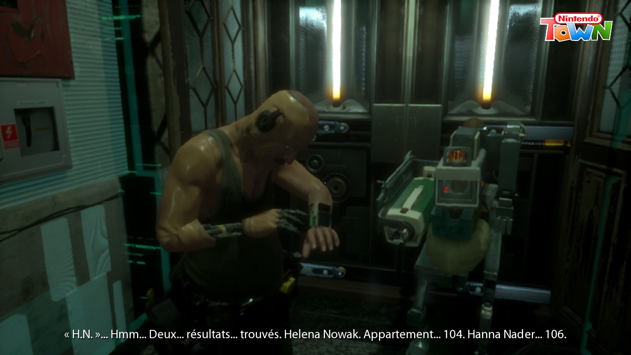 Il arrive un moment où le rêve va commencer à s’immiscer dans la vie réelle du héros et il sera de plus en plus dur de faire la part des choses. On pourrait facilement décrire Observer dans sa globalité comme un mauvais rêve malaisant, frissonnant et intense mais il faut bien avouer qu’après avoir fait Layers of Fear, la recette commence à s’essouffler car on est moins surpris. Observer reste un bon jeu mais finalement assez court (6h pour en voir la fin) et vendu tout de même 30€ sur l’eShop. Nous avons parlé du jeu en lui-même mais qu’en est-il réellement de la qualité de ce portage ? En mode portable, le jeu est relativement beau et se laisse parcourir avec plaisir mais c’est un peu la douche froide sur TV. Le jeu est clairement downgradé par rapport aux autres versions avec un flou constant, notamment sur les arrières plans. Pour tout vous dire, nous avons fait les ¾ du jeu en mode portable car le rendu sur TV sort le joueur de l’expérience. Pour le reste, il y a quelques ralentissement et freezes mais c’est rare, le plus urgent serait de rendre le jeu un peu plus propre car il ne fait pas honneur à sa direction artistique de haute volée. Le jeu est sous-titré en français et brillamment doublé par Rutger Hauer que les fans de Blade Runner auront reconnu.