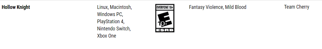 Malgré tout Team Cherry aura continué de chercher un moyen de faire de cette sortie une réalité et c’est par le biais de l’ESRB, l’organisme de notation des jeux américains (équivalent du PEGI en France) que l’information aurait fuité.