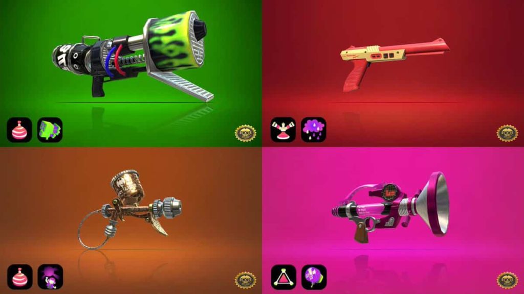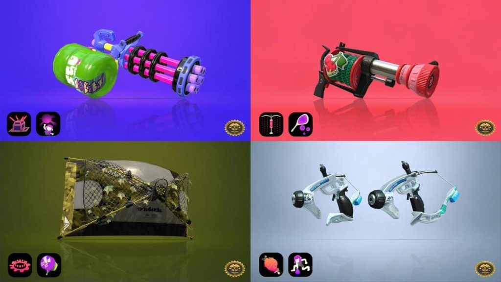 Au programme pour cette 4.6.0 ce sont pas moins de 12 armes qui se joignent à l’armurerie de Cartouche (10 revenus de Splatoon et 2 nouvelles), ces dernières ne viennent pas seules puisqu’un nouveau système de badges fait son entrée.