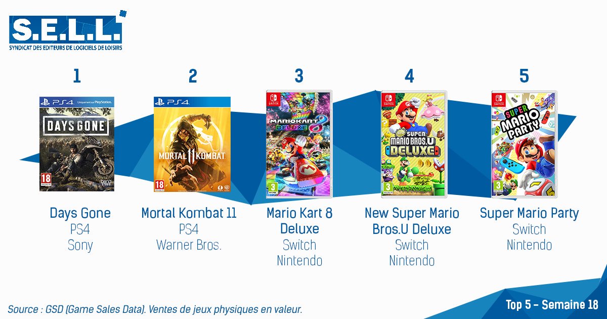 Je vous propose de jeter un œil sur les meilleures ventes physiques en France d’après GSD (Game Sales Data) via le S.E.L.L. pour la semaine 18 de 2019.