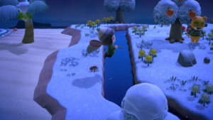 Ce genre d’élément moderne coupe un peu l’aspect île déserte mais bon, on reste dans un jeu vidéo et puis vos amis sont des animaux. Ces derniers dorment, se lèvent et vaquent à leurs activités avant de se recoucher. Chacun ayant un semblant de personnalité, ils ne se lèvent ni ne se couchent à la même heure. Cela ajoute toujours plus un semblant de réel si ce n’est l’aspect physique puisque vous échangez quand même avec des animaux bipèdes. Petite nouveauté aussi que l’on vous annonçait au début, le choix de l’hémisphère nord ou sud en début de jeu qui prend encore plus de sens. Par le passé, Décembre correspondait à l’hiver pour tout le monde. Et les décors devenaient enneigés pour tous. Désormais dans New Horizon en plus d’avoir une expérience répondant à l’horloge réelle, vous avez même une prise en compte de votre localisation sur le globe. Ainsi vous le devinez via ce qu’on vient de vous dire mais l’horloge réelle permet de voir les saisons défiler comme dans la vie réelle mais également de voir de nombreux évènements notamment festifs de la vie réelle retranscrite à la sauce Animal Crossing. Sans parler d’événements plus propre à la série et fantaisiste pour rappeler que l’on reste sur une expérience située entre le réel et le virtuel. Et c’est cela aussi qui fait le charme de la série Animal Crossing, vivre au jour le jour et profiter de ces célébrations comme si l’on y était.