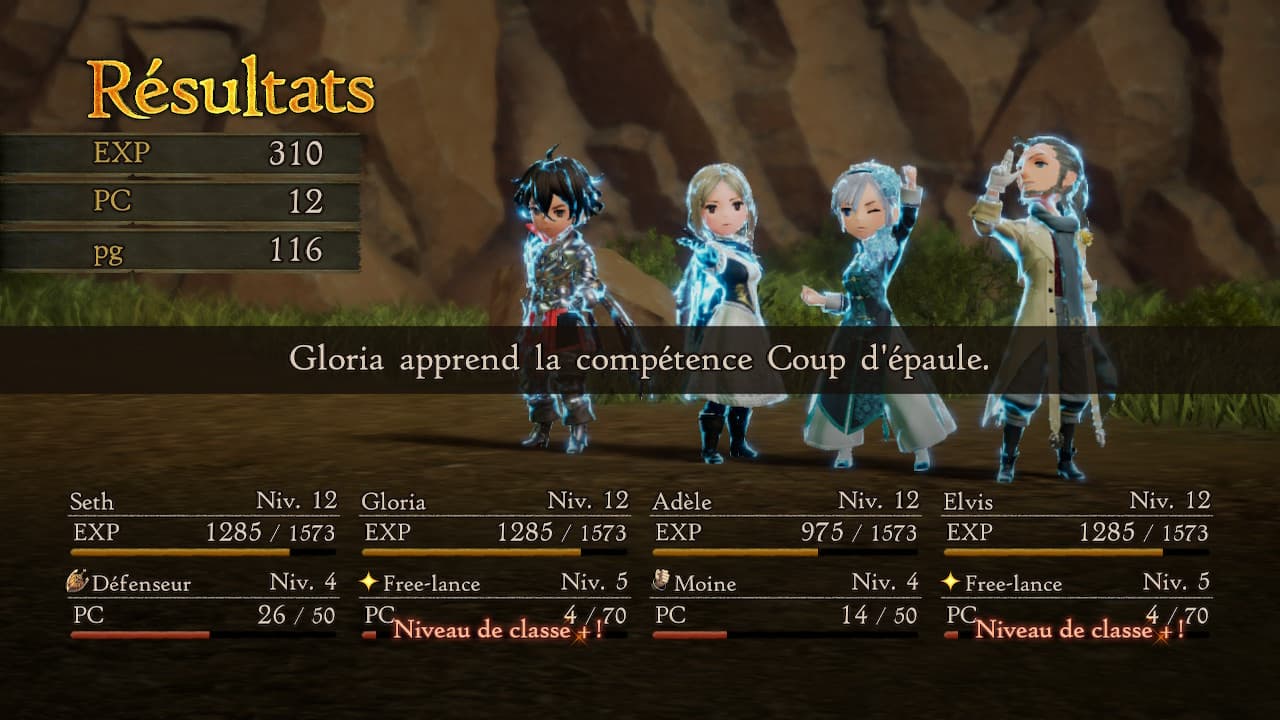 Tout ça aura le mérite de vous faire passer de nombreuses heures de jeu, promesse potentielle d’un jeu final avec une durée de vie plus que correcte, chose assez commune dans un jeu de genre RPG. Notons juste que beaucoup ne s’attendaient certainement pas à passer autant de temps sur cette démo et cela pour une raison autre que la trame de celle-ci. L’accent est donné dès le début de la démo avec un message d’alerte mentionnant qu’elle est proposée avec une difficulté accentuée afin que l’on puisse expérimenter celle-ci un long moment. Du coup, on passe en fait une grosse partie de la démo à farmer les personnages et leur classe car la progression en ligne droite est, osons dire, impossible. Le farm est quelque chose d’habituel dans les jeux Bravely, il reste relatif à certains niveaux de difficulté du jeu que l’on peut sélectionner.