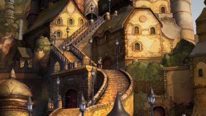 Les allers-retours entre la ville et l’extérieur étant également fréquents, la présence d’un “voyage rapide” ne pourrait que rendre l’expérience plus agréable selon nous. Sur un autre plan, les personnages ont également un rendu plus propre que jamais avec un soin toujours non négligeable sur leur différentes tenues liées à leur classe, fonctionnalité sur laquelle nous reviendrons. Lorsque l’on voit les personnages se parler dans certaines scènes, il faut aussi noter que cette fois les détails sont tels que l’on distingue désormais les 5 doigts de leurs mains. Cela semble banal, mais ceux qui ont fait les opus 3DS se souviennent encore du rendu boudiné de tout cela. Aussi, en parlant de discussion, la démo nous laissait la possibilité de jouer avec le doublage anglais ou japonais. Très bonne chose pour les fans. Autre point à souligner, lorsque l’on rentrait dans des maisons, il y avait comme une légère transition sur 3DS. Cette fois-ci, on entre sans transition, en fait l’intérieur des habitations s’affiche directement au premier plan sur le décor dans lequel on évoluait. Il y avait quelques chargements et transitions lorsque l’on changeait d’aire, comme lorsque l’on accédait à une sorte d’immense cabaret de la ville ou dans le palais royal de la cité.