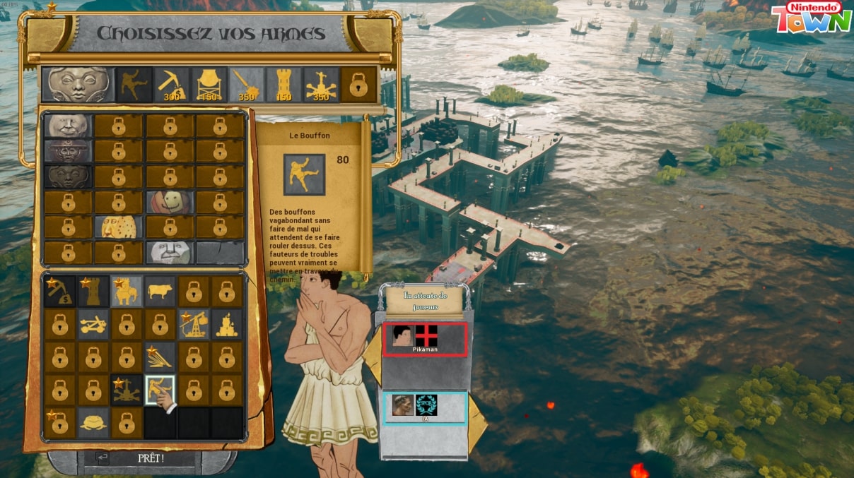Le jeu, dans ses parties classiques, est donc constitué en trois phases : choisir votre boulet via un assez large panel de prétendants, j’ai personnellement une préférence pour la meule de fromage. Celui-ci servira pour la phase d’attaque. Puis choisir vos unités, là encore dans un éventail assez large de possibilités, que vous pourrez améliorer ou pas, les améliorations prenant une place dans vos 5 unités différentes possibles.