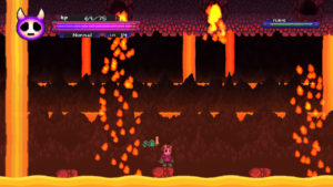 Paper Castle Games nous propose un savant mélange de plateforme 2D et action RPG pas comme les autres. Le jeu se présente sous un side-scrolling obligeant le joueur à se déplacer de droite à gauche ou inversement. La partie Plateforme nous rappellera des jeux tels que Mario ou Rayman, avec des sauts à réaliser, des moments sous l’eau ou encore des phases où vous devrez sauter de liane en liane pour pouvoir continuer à avancer. Le studio n’a pas manqué d’imagination en ce qui concerne les différentes phases de jeu en 2D. Vous serez surpris de voir que vous aurez par exemple des courses à réaliser dans les bas-fonds d’un arbre, un concours de patinage artistique où vous devrez appuyer sur les touches indiquées ou encore une course poursuite en snowboard sur la pente d’un volcan ! Pas mal de choses géniales qui rythment assez bien le jeu malgré un schéma assez basique. Car oui, le parcours proposé est tout simple : plateforme, combats, boss, le tout sans traduction française, ce qui est bien dommage pour comprendre les textes et les dialogues humoristiques qui participe au rythme tout au long de l’histoire. D’ailleurs, vous aurez un personnage nommé Puzzleman qui apparaîtra en pleine quête et qui vous embarquera dans son monde, une sorte d’émission télévisée appelée le Puzzle man Show, pour vous poser des questions, justement, sur les petites choses du jeu comme les dialogues ou autre petits détails. Vous serez bien évidemment récompensé par rapport aux bonnes réponses données.