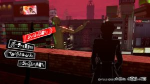 Notre protagoniste sort rassembler les ingrédients à Shibuya avec Ryuuji et Morgana. En cette journée ensoleillé, l’idole Hiiragi Alice inaugure l’ouverture d’une boutique de vêtements à son image. La foule est rassemblée sur la place et nos 3 héros curieux se mêlent à la foule. Hiiragi Alice semble distribuer des cartes de visite aux personnes dans la foule et n’oublie pas notre cher héros. Cette carte de visite présente également un mot de passe afin de devenir ami avec l’idole sur la fameuse application EMMA. C’est une application smartphone fictive, d’aide à tout faire.