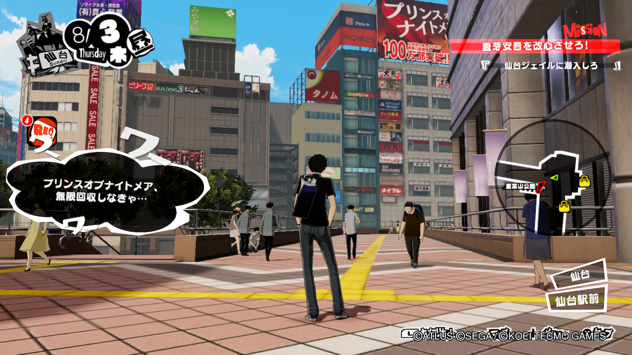 Ce voyage vous mènera à travers Shibuya au début, mais vous irez également vers les villes de Sendai et Sapporo au nord du Japon puis on vous laisse surtout la surprise des autres zones du jeu. Un véritable voyage à travers le Japon sur au moins une bonne cinquantaine d’heures en prenant votre temps et plus pour les plus perfectionnistes. Pour ce qui est désormais un Action RPG, c’est une durée de vie énorme avec une histoire véritablement bien écrite. On a toujours des personnages torturés par divers traumatismes et problèmes de société.