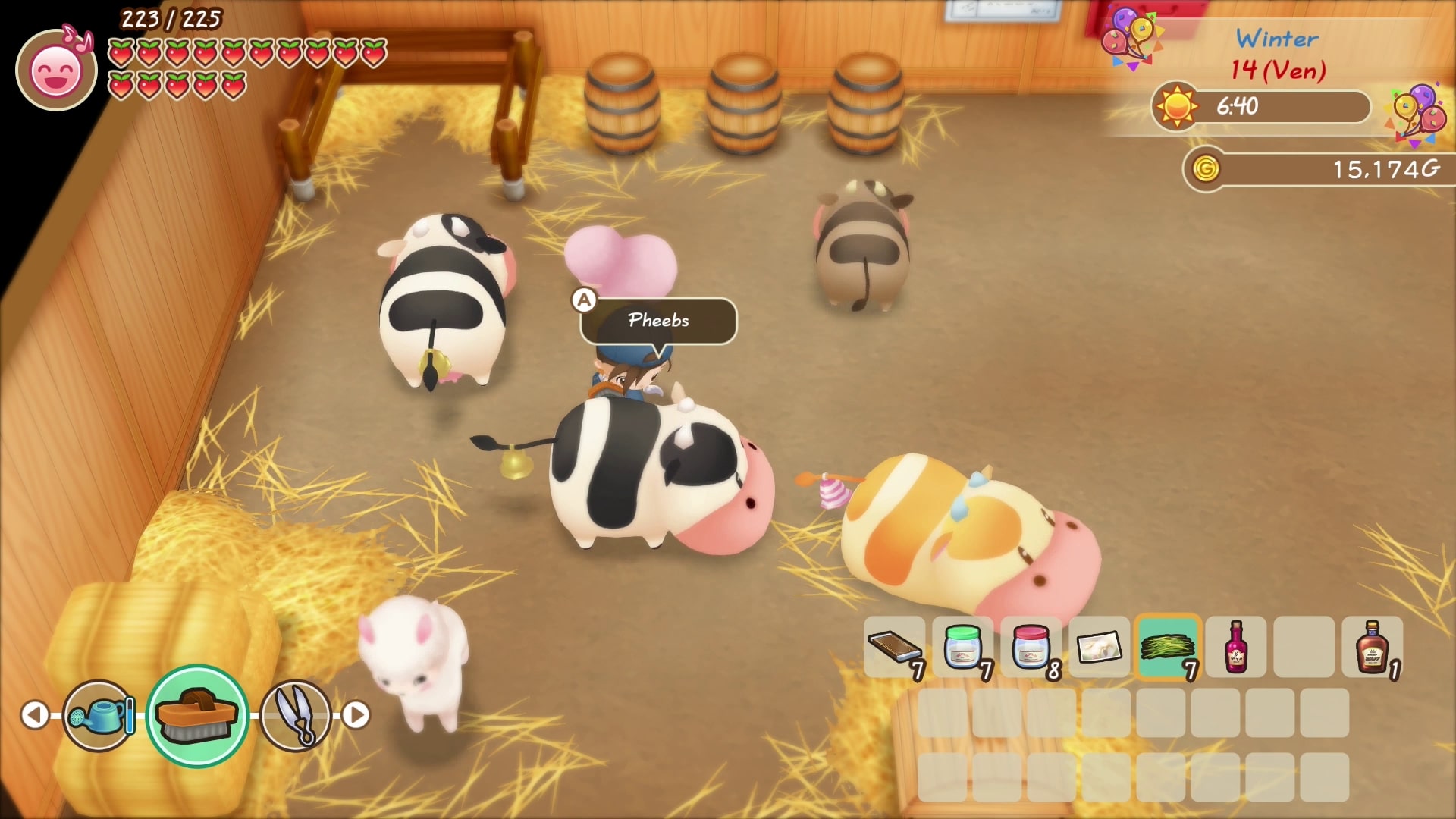 Mais il faudra aussi rapidement acheter des bêtes, et s’en occuper. Des vaches roses pour faire du lait aux fraises, des poules, des poneys, tout y est, les habitués de la série ne seront pas perdus. Et pour les nouveaux, pas de panique, vous serez pris par la main et on vous expliquera tout. Le maire sera assez présent au début, comme les voisins et autres membres de la ville. Une mini ville active qui proposera souvent des évènements à ne pas louper. Car clairement, ils feront la fête sans vous. Une bonne gestion des heures et des dates et donc primordiale, surtout que de nombreux commerces ne sont ouvert que sur de courtes périodes.