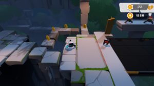 Les musiques sont agréables et correspondent vraiment bien au titre, quant aux visuels s’il y a un peu d’aliasing, le tout reste très propre, joli et n’entache rien, les plateformes et autres éléments utilisables sont visibles et aucun problème de lecture du décor ne se fait sentir (et heureusement vu que le jeu n’est pas non plus une dinguerie de détails).