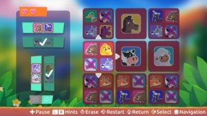Si le jeu est bien loin d’utiliser toutes les compétences de la Switch (et pourrait parfaitement se retrouver sur mobile), Crowdy Farm Puzzle n’en reste pas moins très coloré et mignon. Nous regrettons tout de même l’extrême redondance des décors, des couleurs, et des fonds d’écran lors des différentes parties. En effet, si le choix de conserver les mêmes animaux peut donner une certaine identité au soft, reprendre les mêmes espèces dans des cadres un peu plus variés n’aurait pas dénaturé l’ensemble… allant même jusqu’à faire oublier cette impression de légèrement tourner en rond sur les différents jeux proposés.