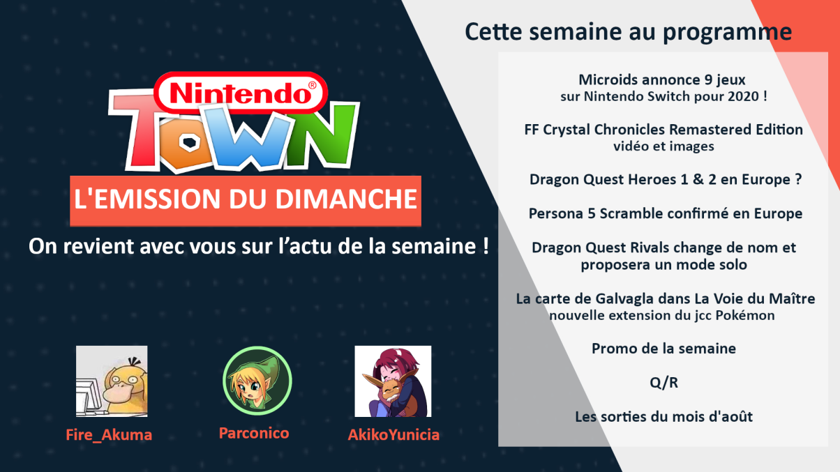 Rendez-vous à 19H sur la Twitch de Nintendo-Town. L’actualité de la Nintendo Switch, sur notre site comme ailleurs, c’est l’information instantanée ! On vous propose ce soir, à 19H, une émission qui revient plus paisiblement sur la semaine et les informations majeures en format podcast. On discutera avec l’équipe des informations marquantes, mais aussi avec vous! La parole vous sera donnée et vous allez pouvoir aussi nous dire qu’elle information vous a marqué cette semaine.