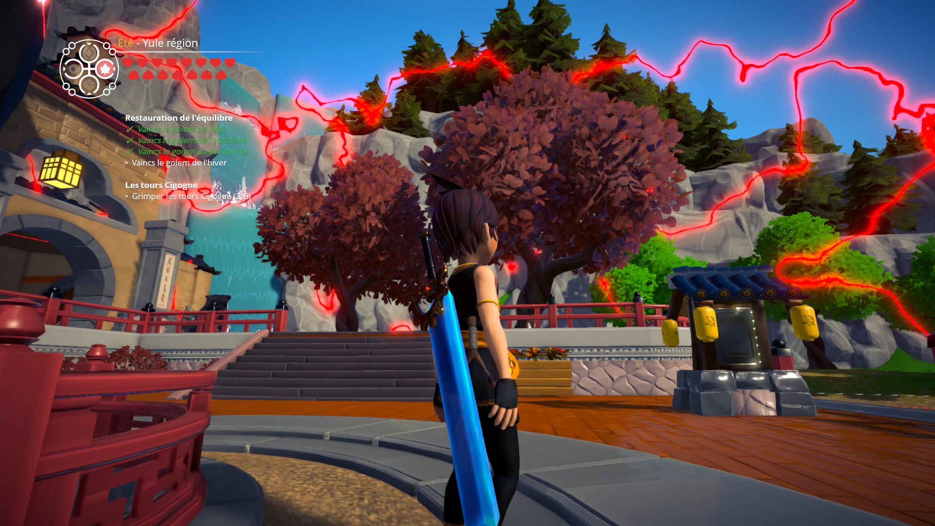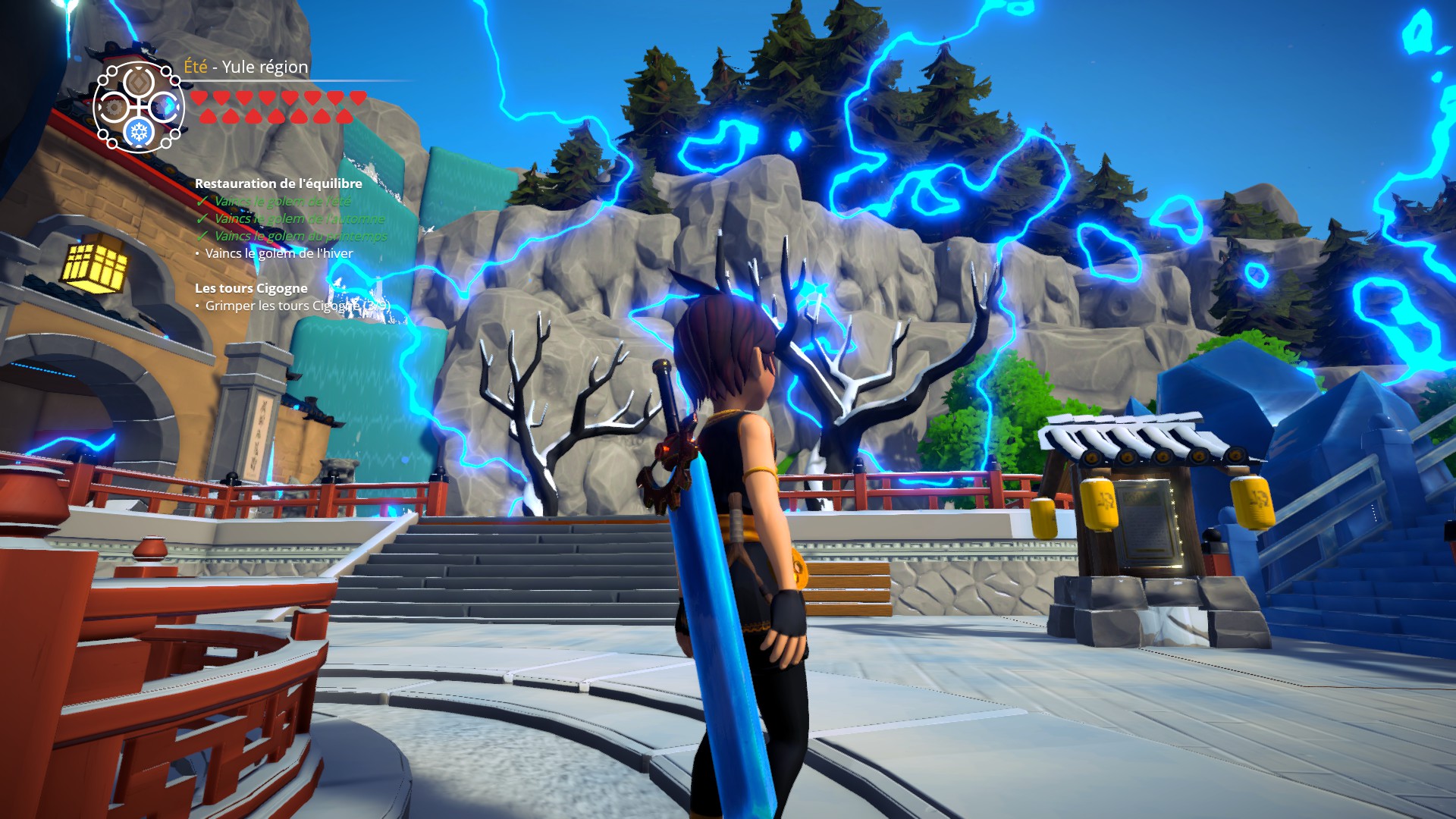 En parallèle, les cristaux rouges tombent sur votre village et créent un dérèglement des saisons. L’hiver laisse place au printemps, la neige fond sur tout le village sauf sur votre maison qui est protégée par la magie du cristal de votre père.