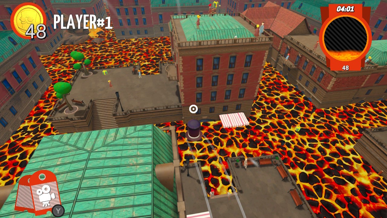 Vous devez parcourir le plus vite possible la map à la recherche d’un humain dont on voit la tête affichée comme objectif. On virevolte, saute et essaie tant bien que mal de retomber proprement sur le crâne de celui ou celle qu’il faut couvrir. Une fois le point pris, une nouvelle tête à trouver dans toute la carte.