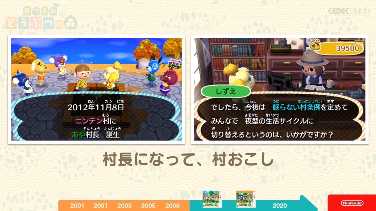 Animal Crossing: New Leaf sorti en 2012 sur Nintendo 3DS représente un tournant important pour la série. En se posant à nouveau la question de savoir ce qui faisait d’Animal Crossing un jeu ou non, l’équipe en est revenue au fameux résultat : c’est un jeu de “Communication”. C’est en repartant sur cette idée et en prenant en compte les possibilités du moment qu’a été introduite l’idée d’incarner le “Maire du Village”.