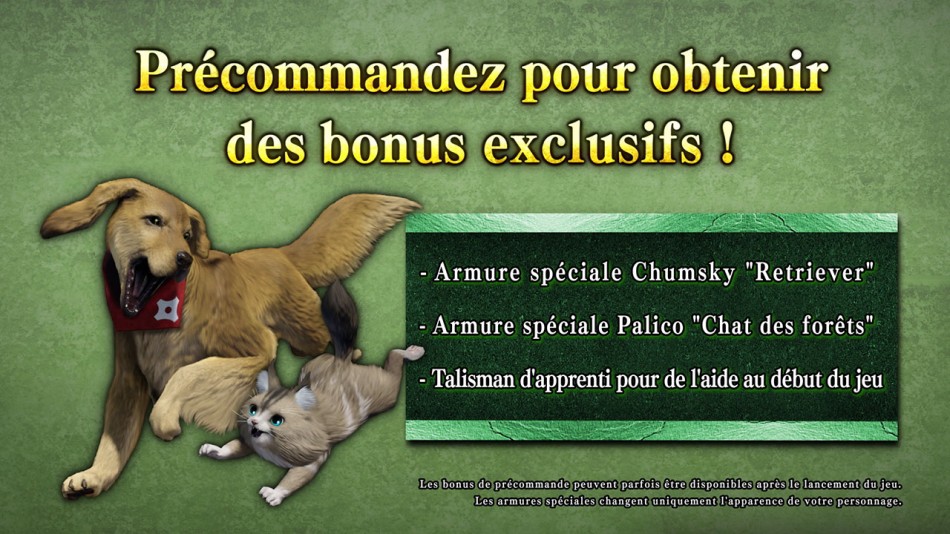 - Armure spéciale Palico « Chat des forêts » : donne à votre Palico l’apparence d’un fieffé filou des forêts !